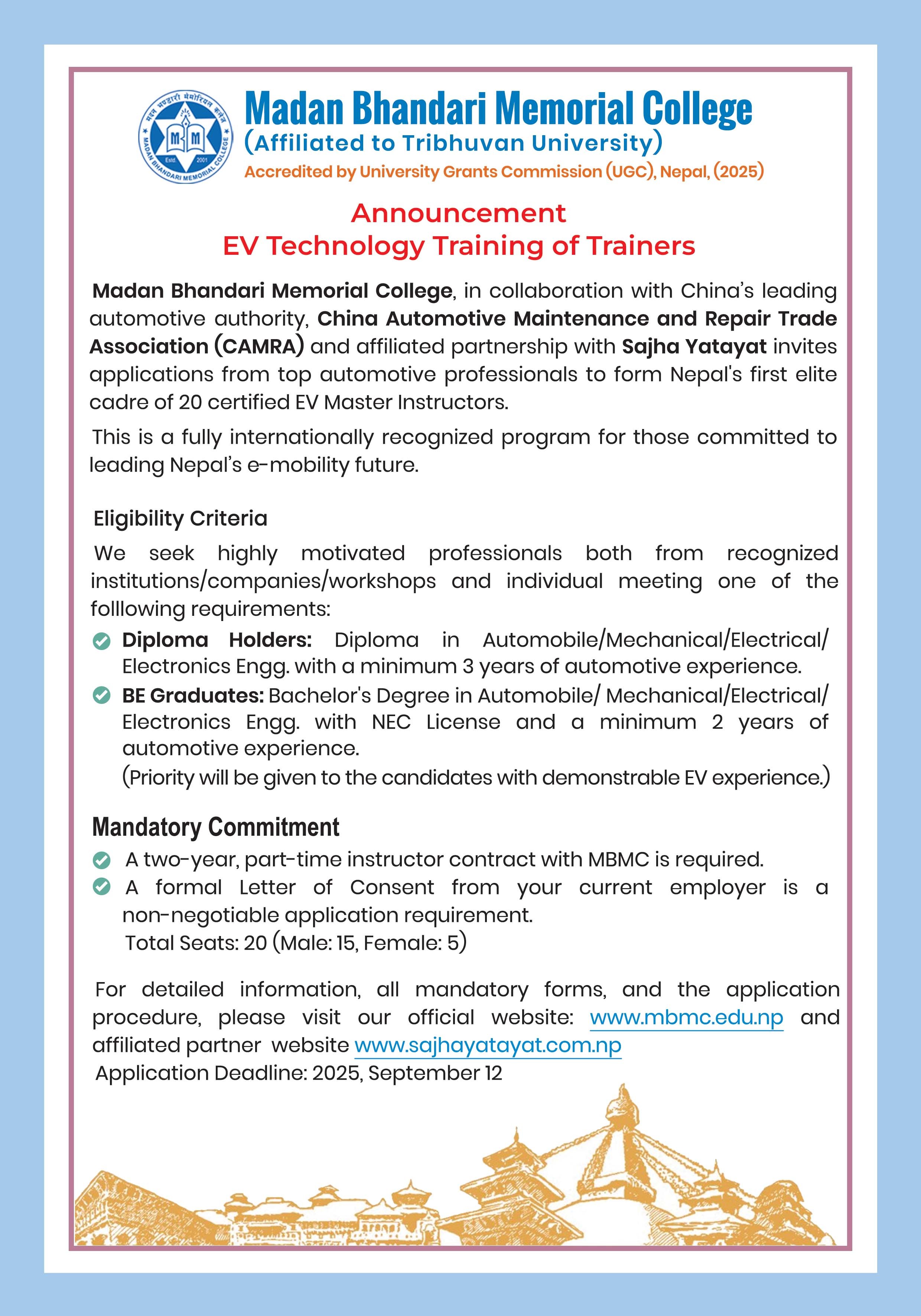Announcement: EV Technology Training of Trainers